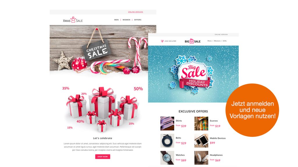 Schauen Sie rein, lassen Sie sich inspirieren und nutzen Sie die Weihnachtsvorlagen (diese finden Sie unter Vorlagen / Empfehlungen) für Ihre nächsten Advents- und Weihnachtsnewsletter!